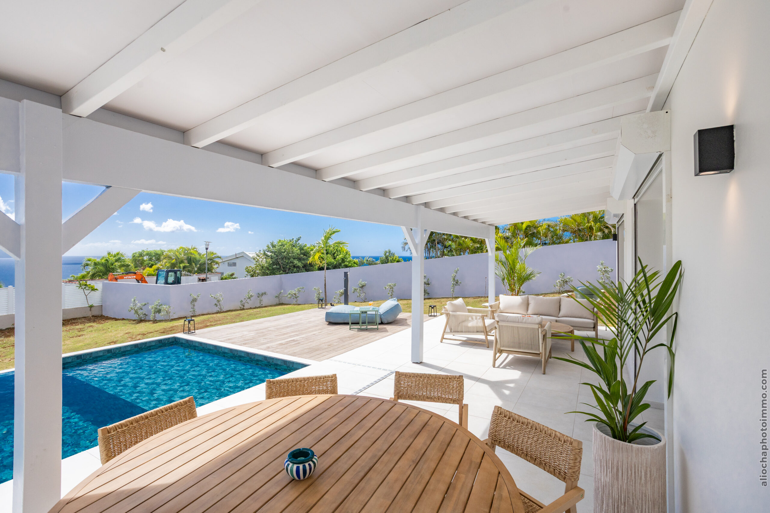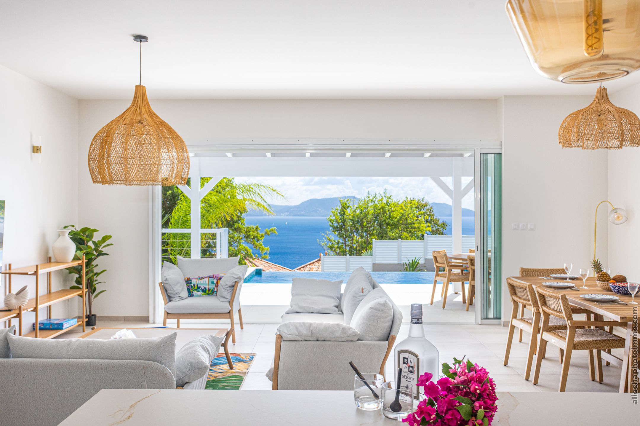 Profitez d’une vue exceptionnelle sur la mer des Caraïbes depuis la terrasse, la piscine et les espaces de vie de la Villa.